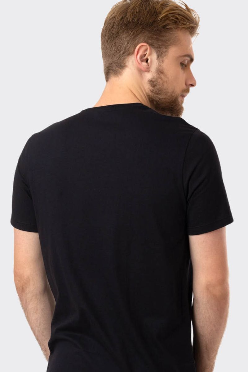 Camiseta feita em malha algodão, com modelagem básica e manga curta. Esta peça tem um corte tradicional, mais solta, comprida e gola arredondada com acabamento em ribana.